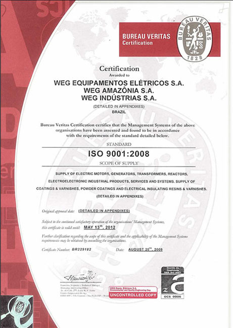 Сертификаты качества WEG - ISO 9001:2008 [1089кб]